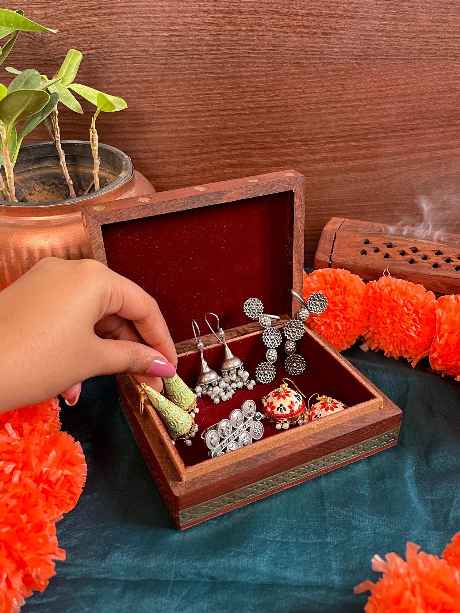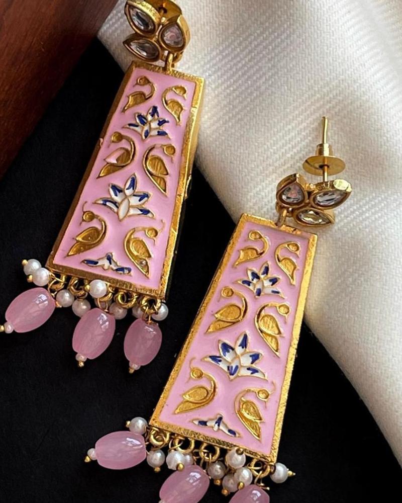 Meenakari Box shape Earring and Jhumki Earring (set of 2 pairs)