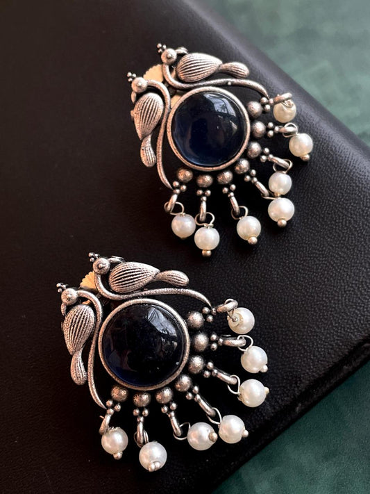Oxidized Jhumki with Monalisa Stone Top Antique Look Earring