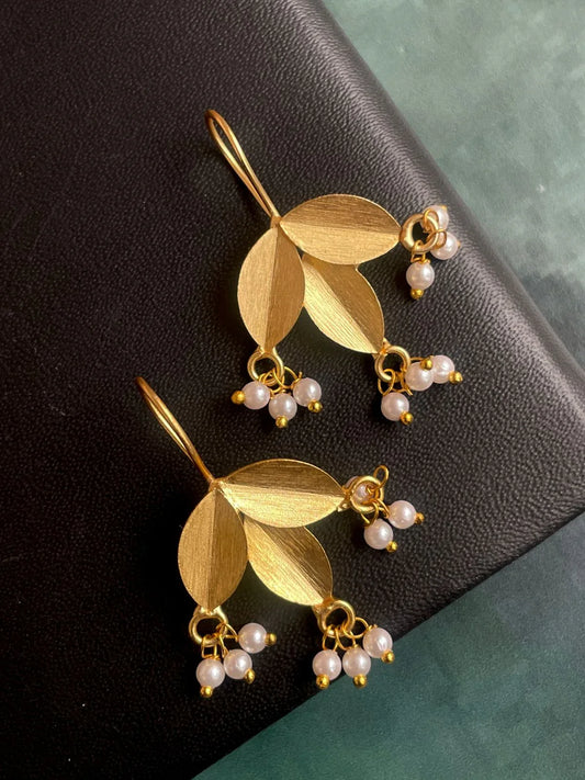 Three Leaf Golden Beaded Stud Earring