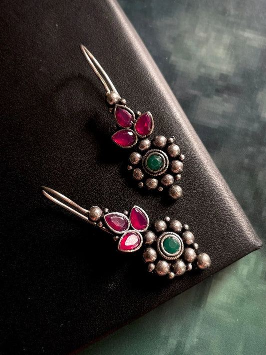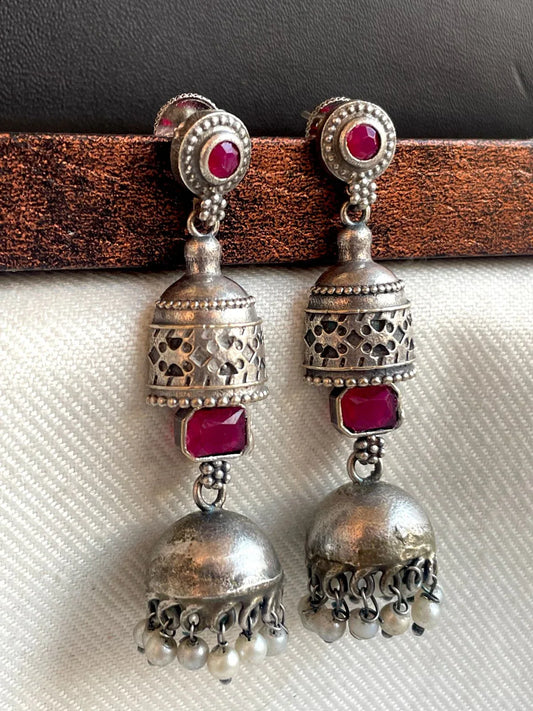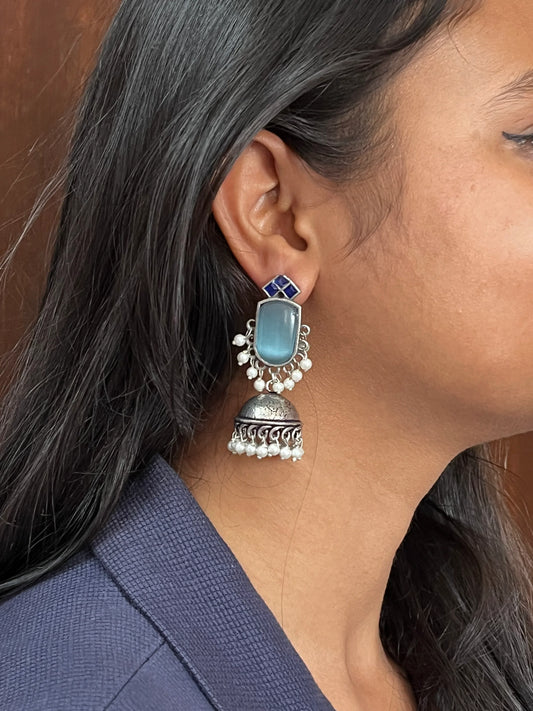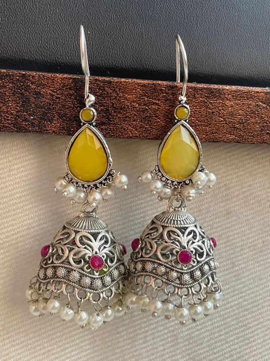 Oxidized Jhumki with Monalisa Stone Top Antique Look Earring