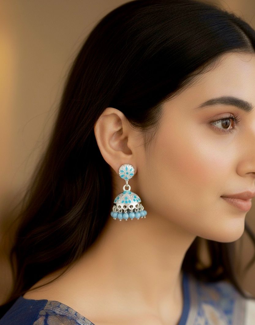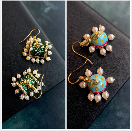 Meenakari Box shape Earring and Jhumki Earring (set of 2 pairs)