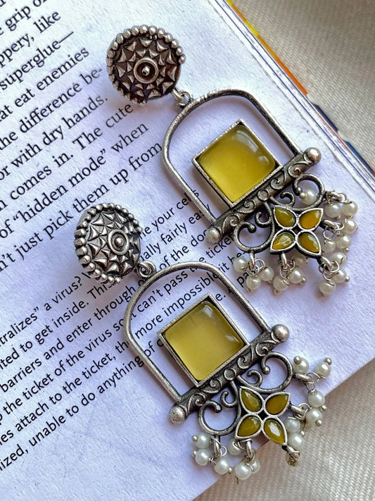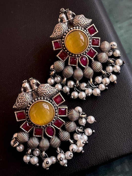 Monalisa Stone with Pearl Oxidized Earring