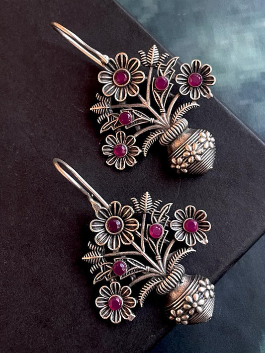 Flower Pot Shape Oxidized Stud Earring