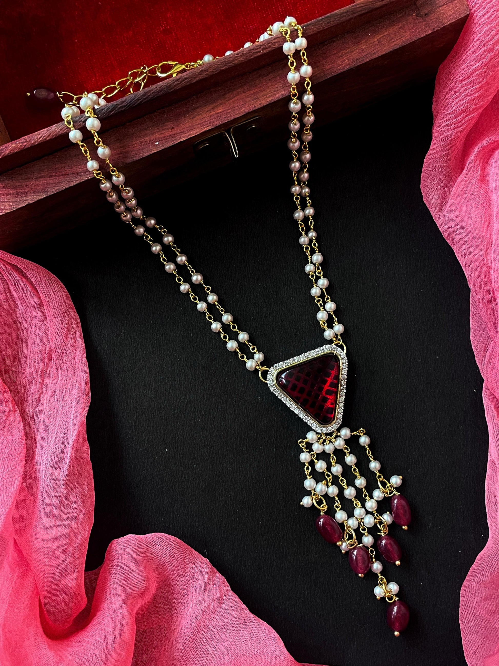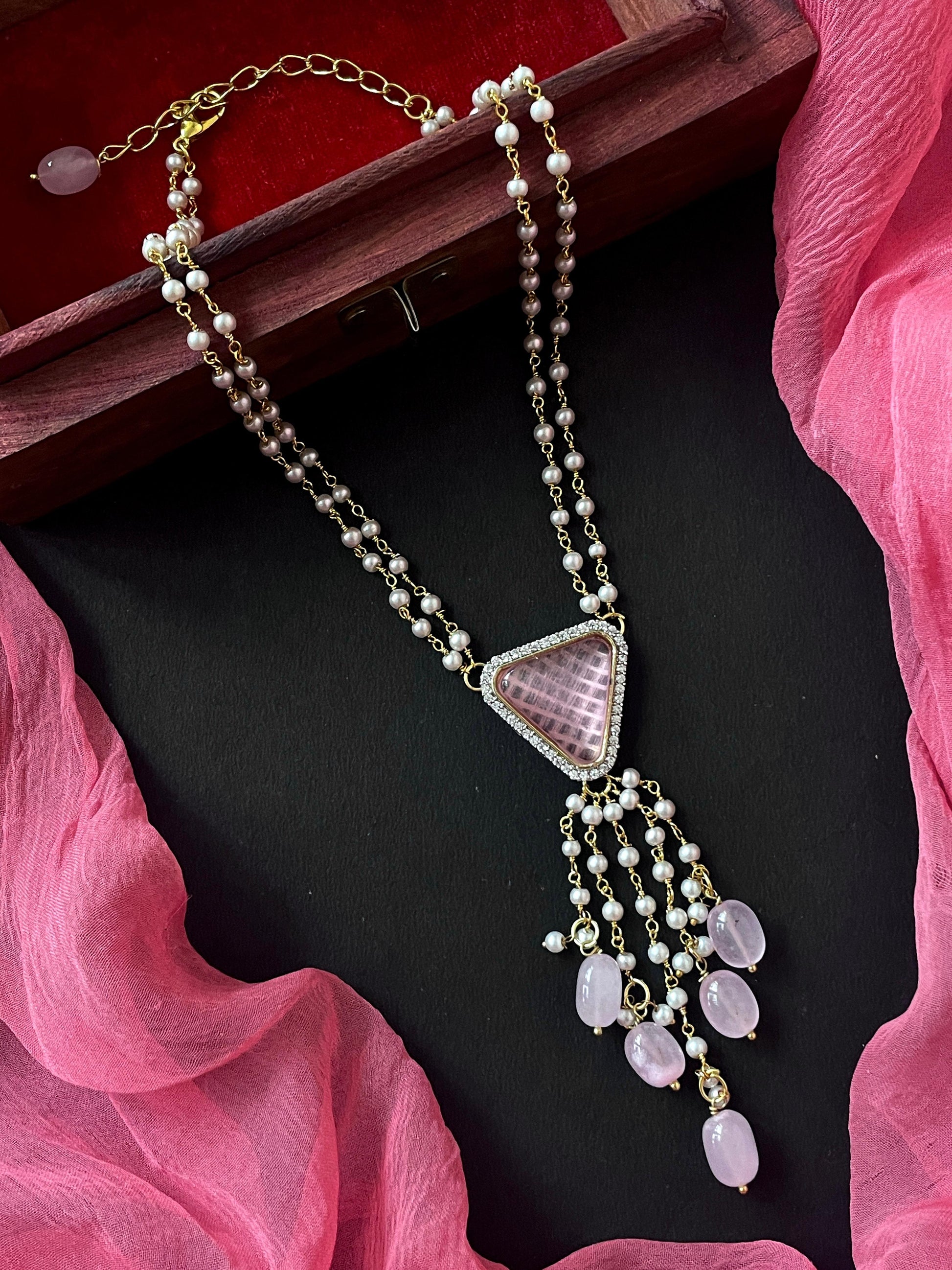AD with Monalisa Jade Stone Beaded Pendant Beaded Mala Necklace