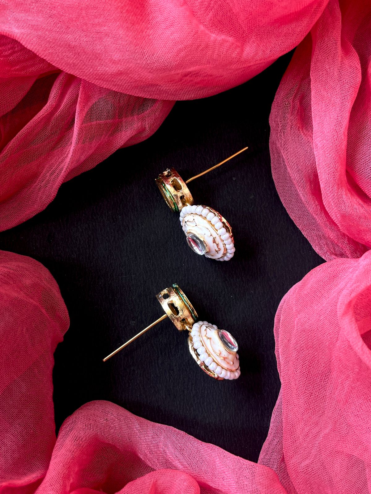 AD with Monalisa Stone Kundan Meenakari Pendant with Earring Set