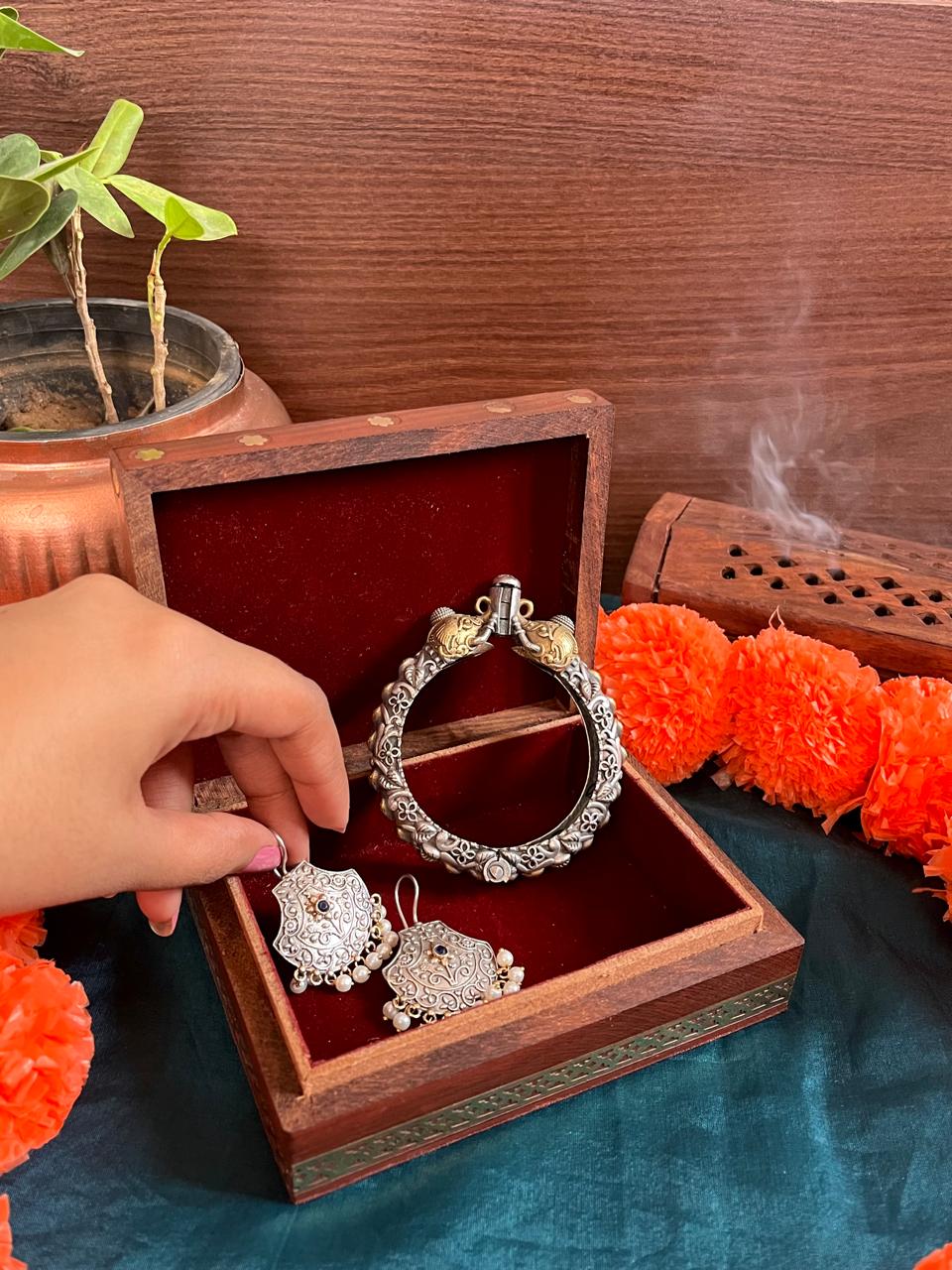 Size : Kada Internal diameter 5.5 cm, Earring Length 5 cm