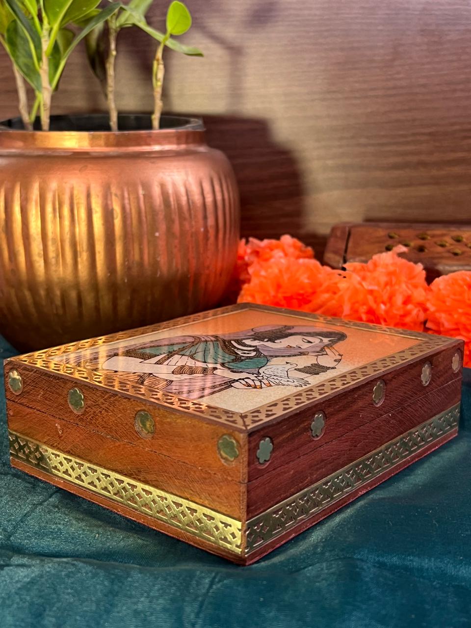 3. Wooden Box of 215 gram with Inside size 11.5cmx9cmx2.5cm and Outside size 13cmx11cmx4cm