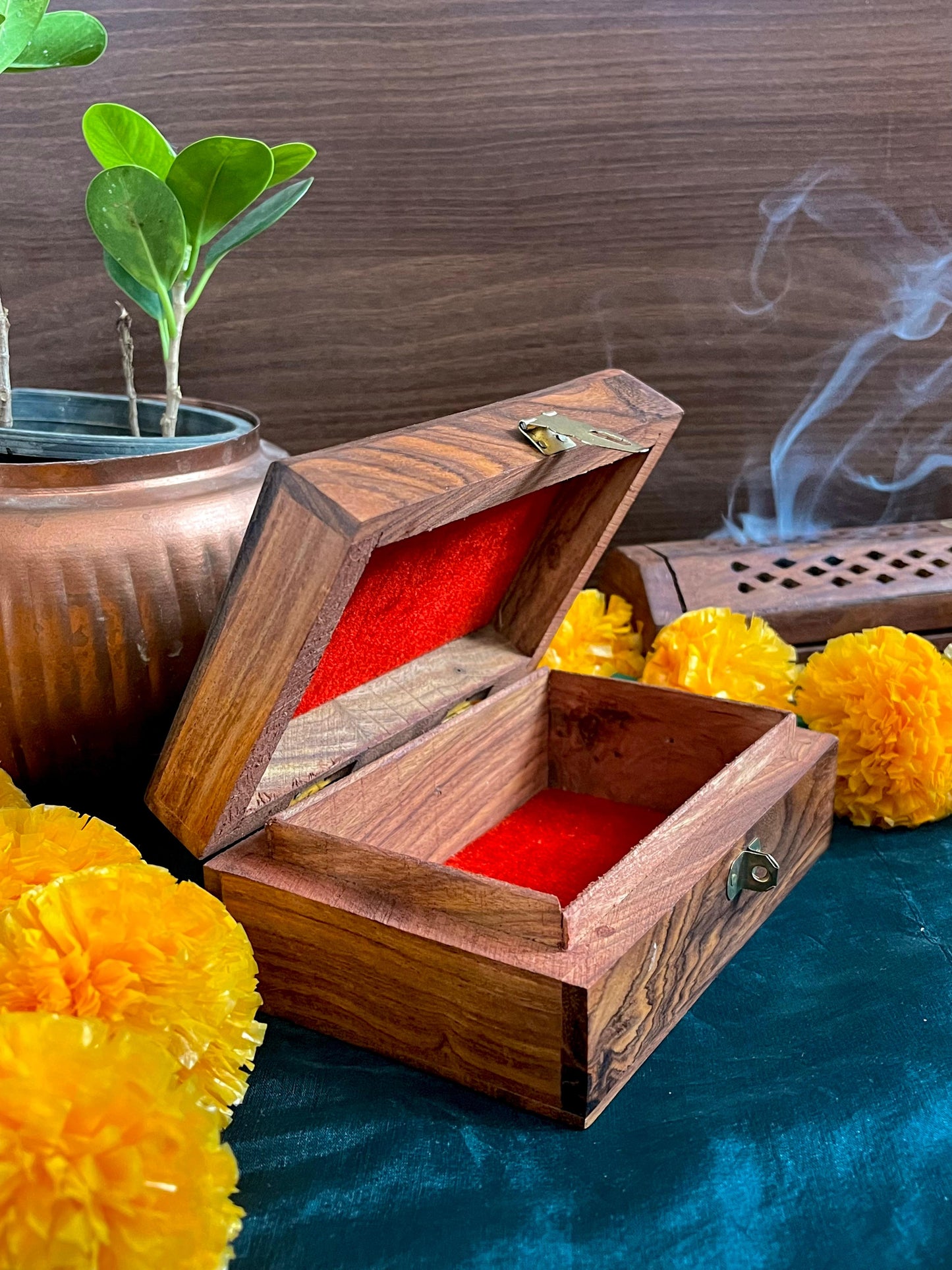 2. Wooden Box of 380 gram and Outer size 15cmx10cmx6cm and Inner size 12x7cmx4cm