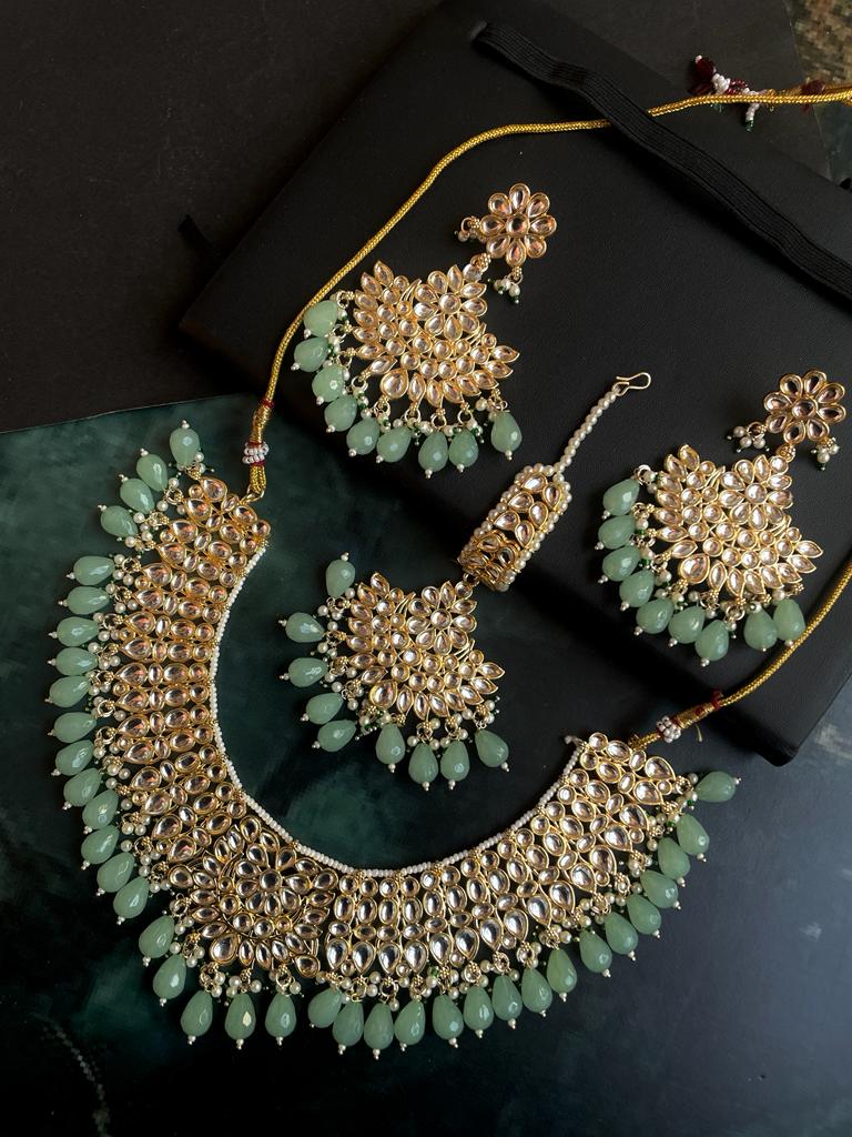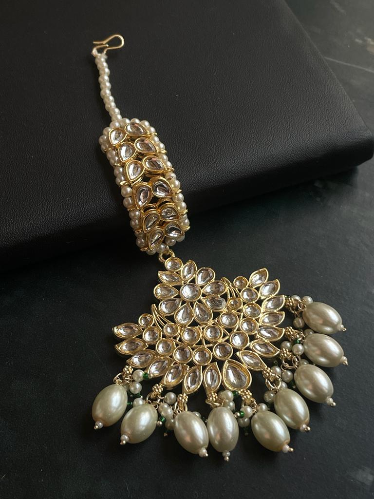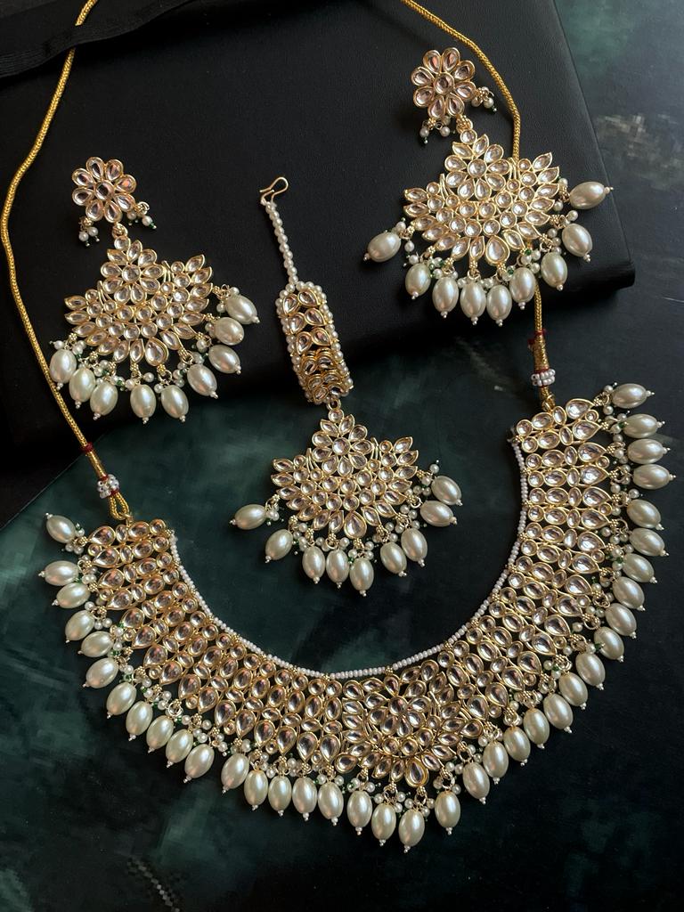 Kundan with Pearl Choker, Earrings and Mangtika set