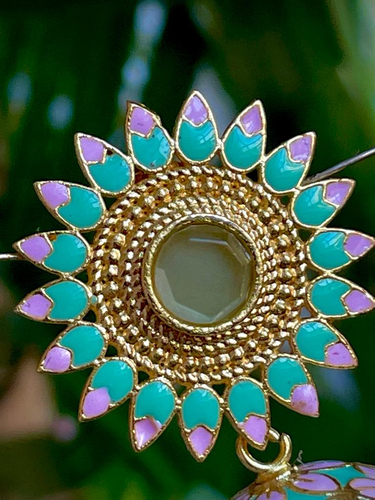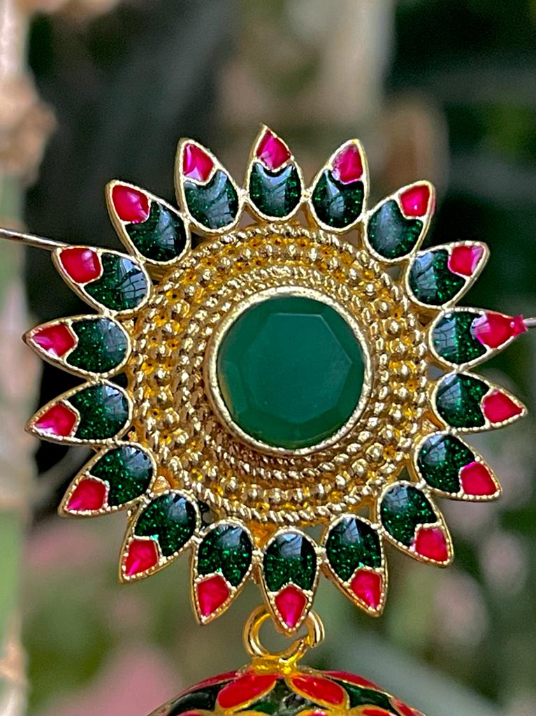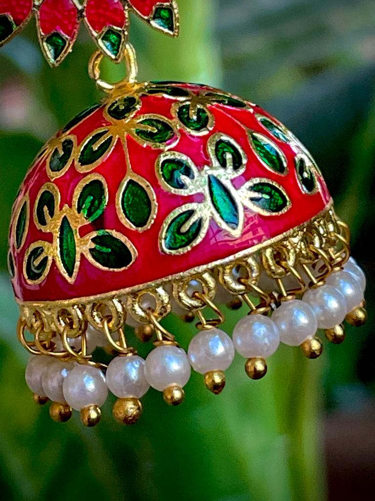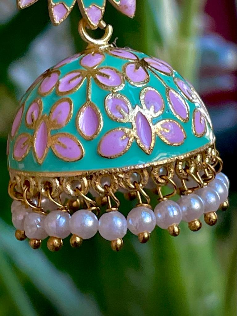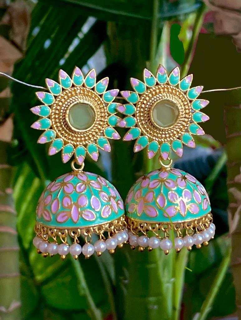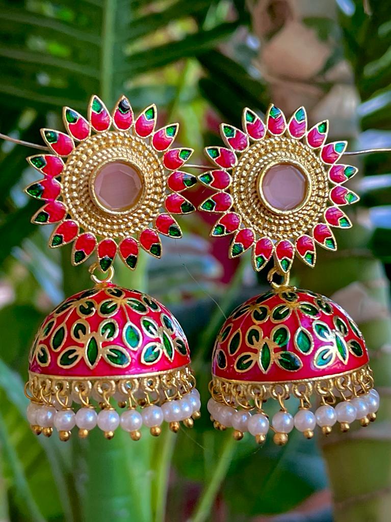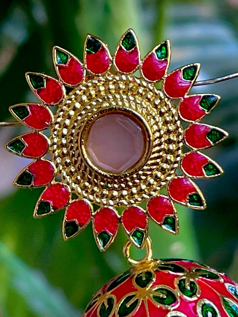 - Beautiful dome-shaped jhumka crafted with traditional Meenakari artistry.