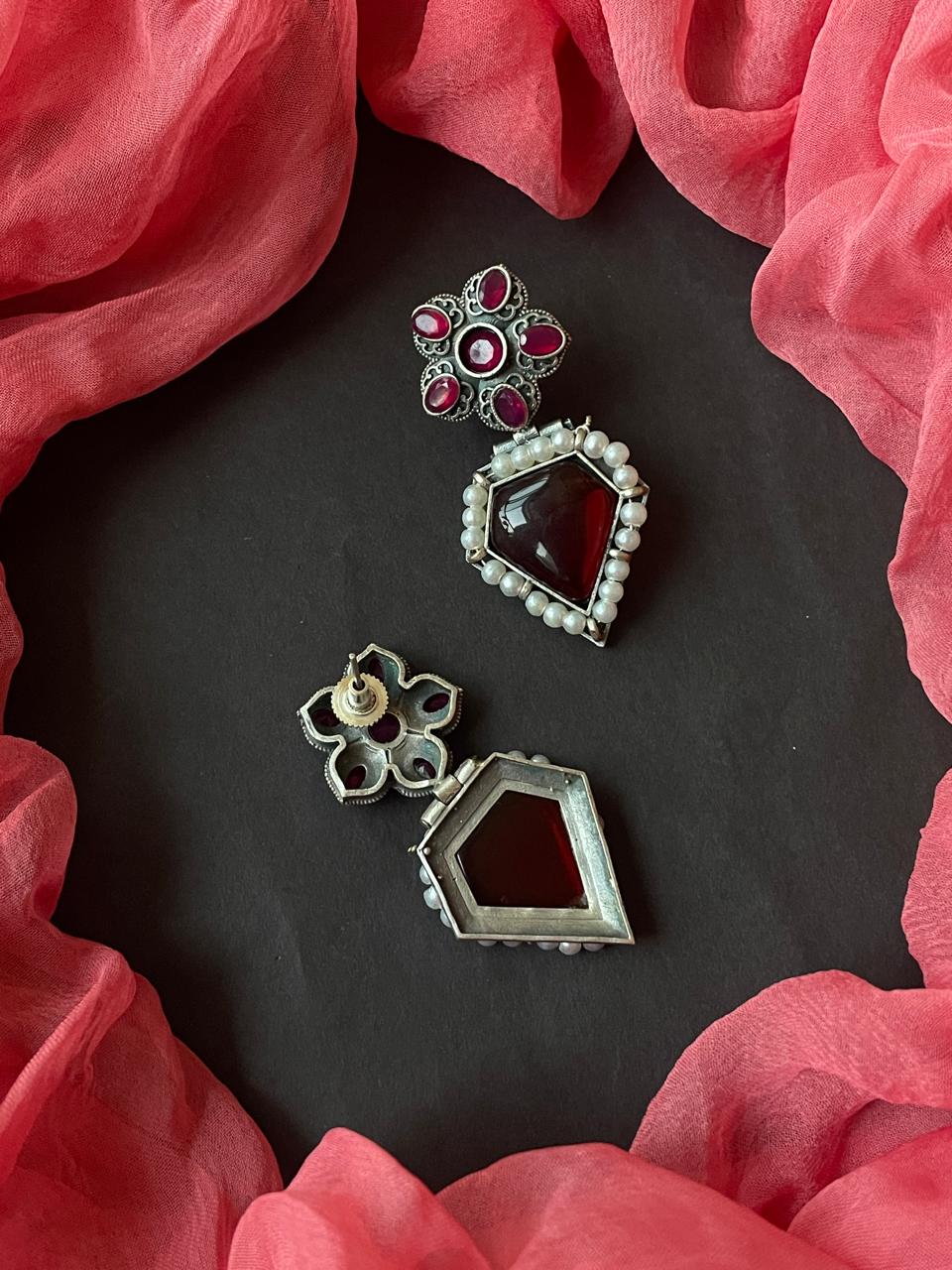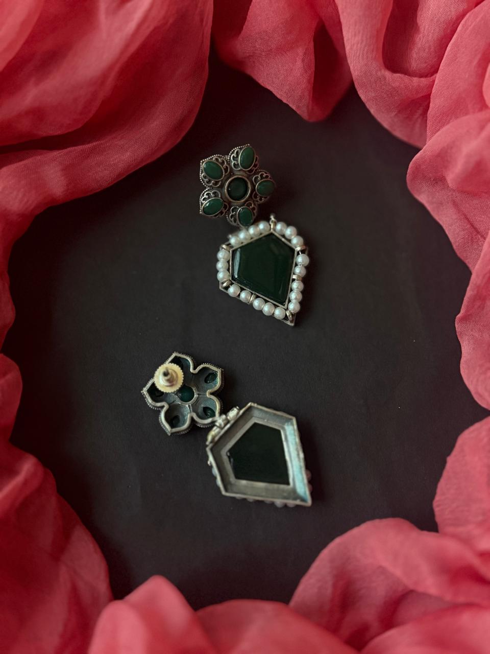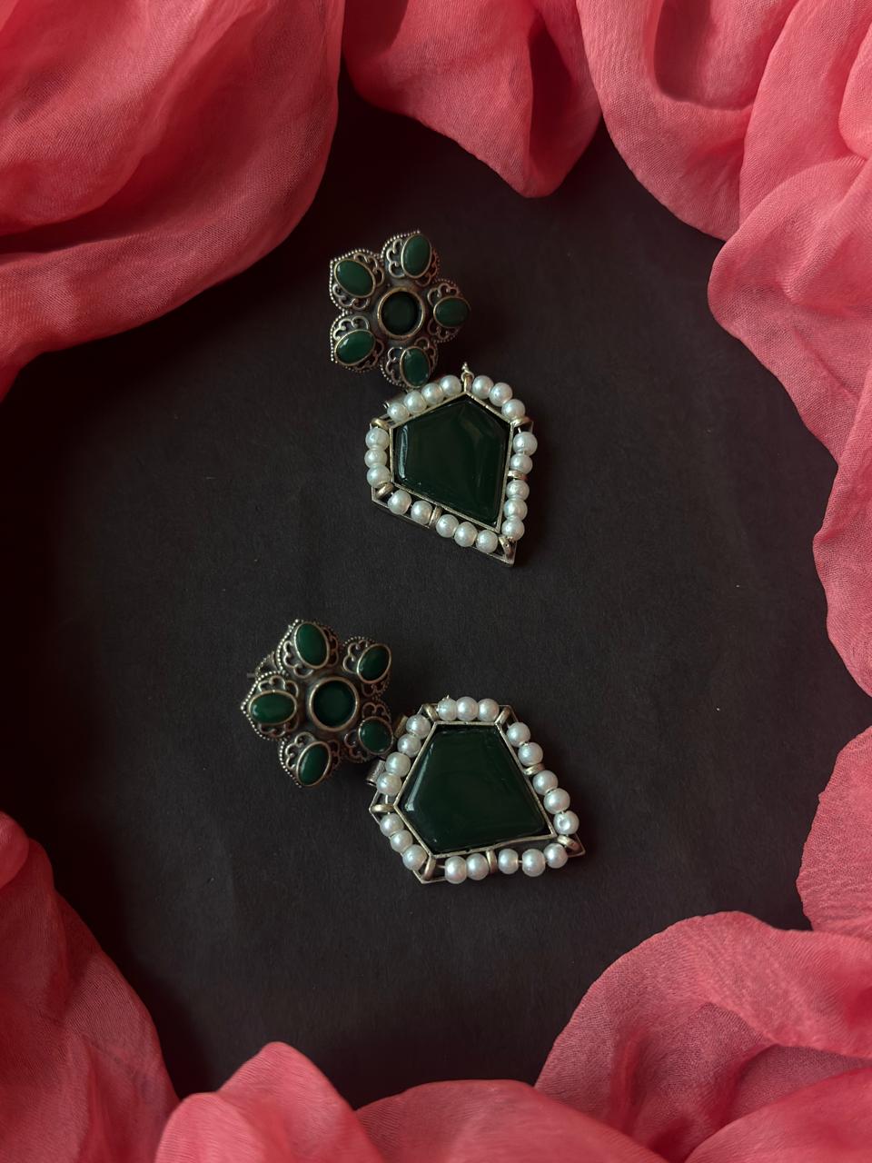 Monalisa Stone Oxidized Necklace with Earrijg set