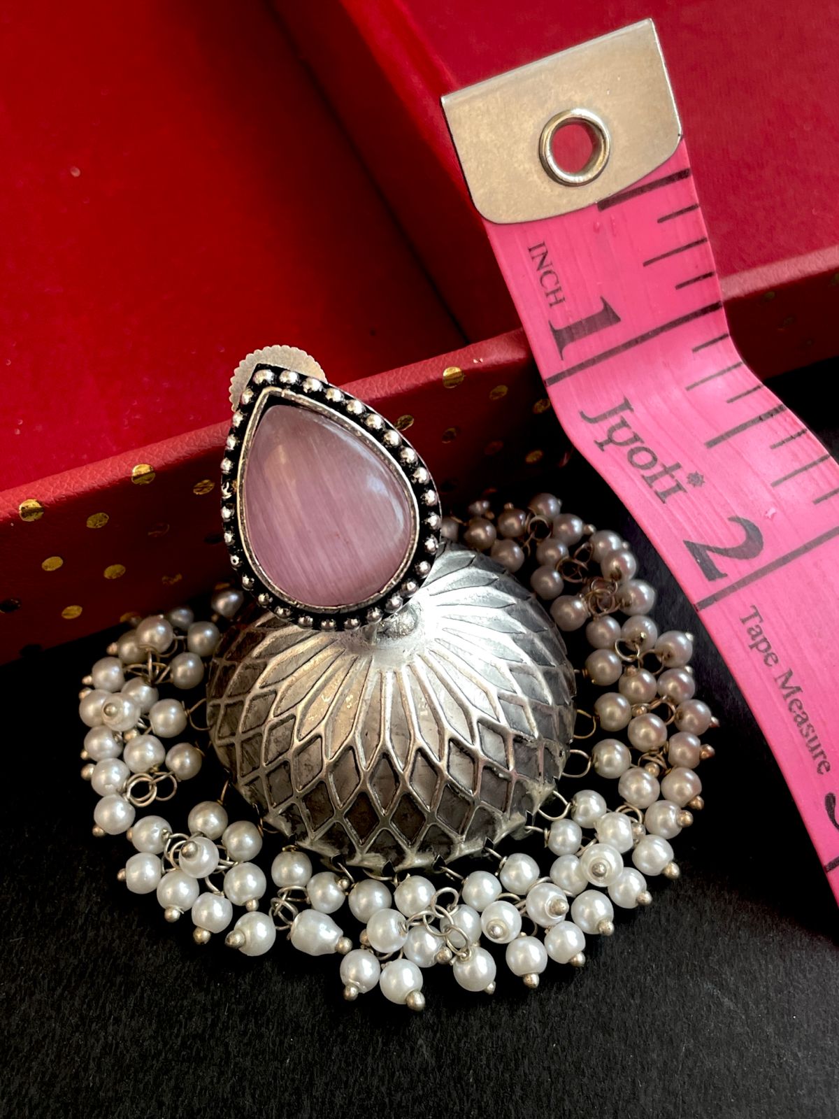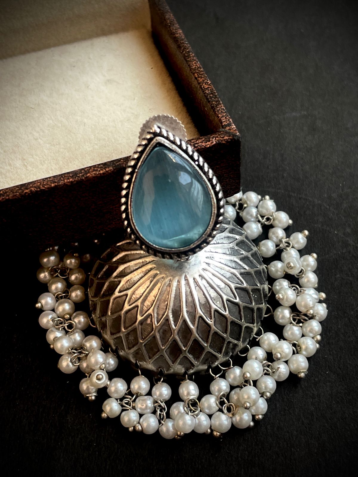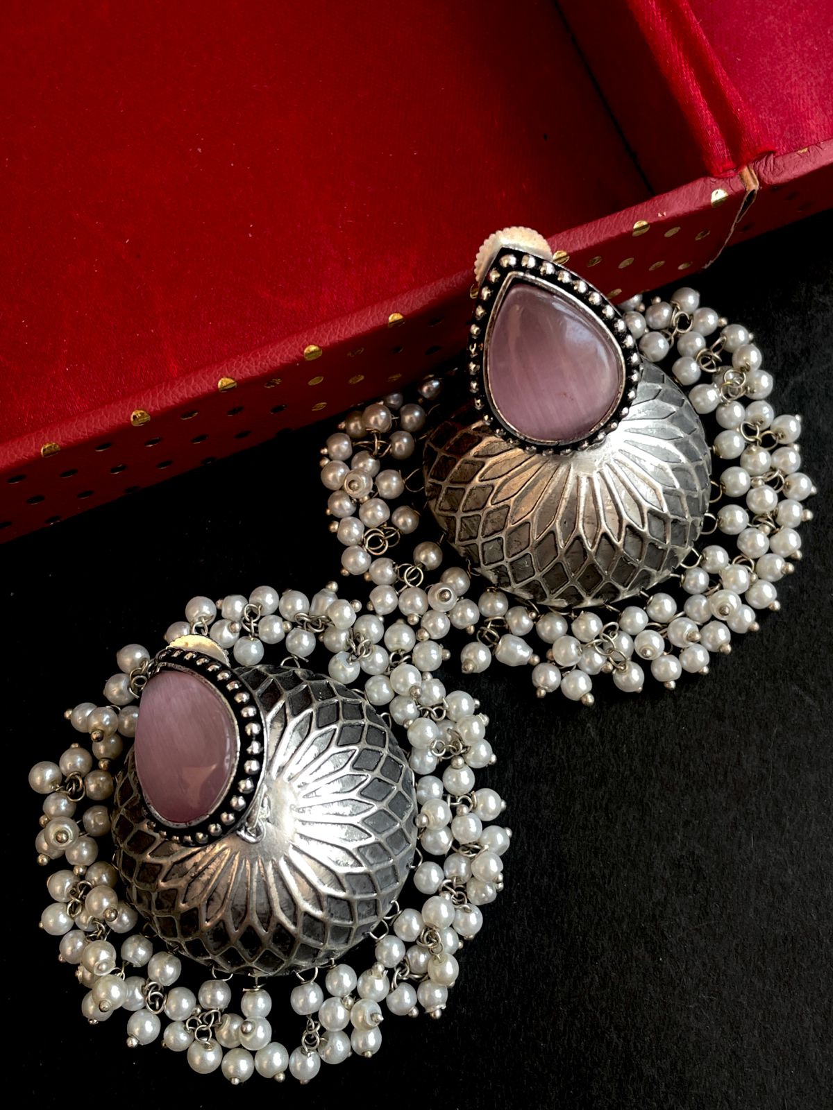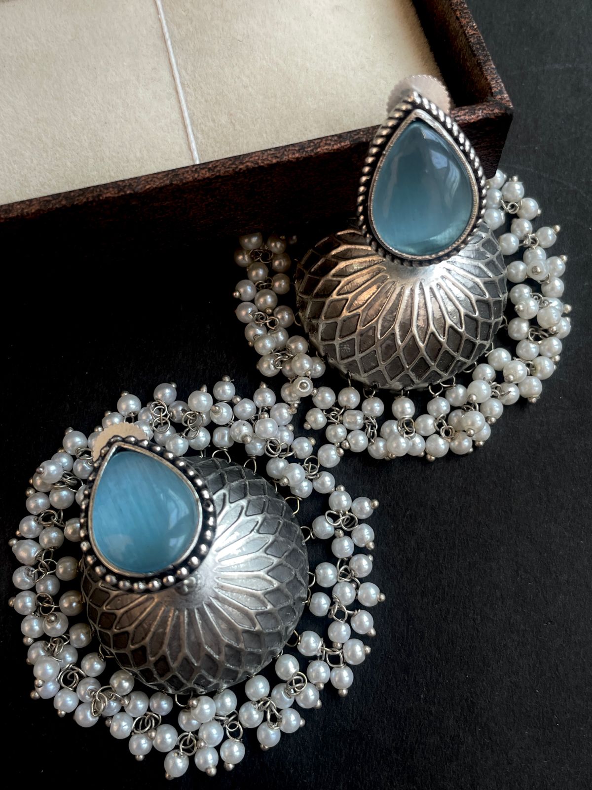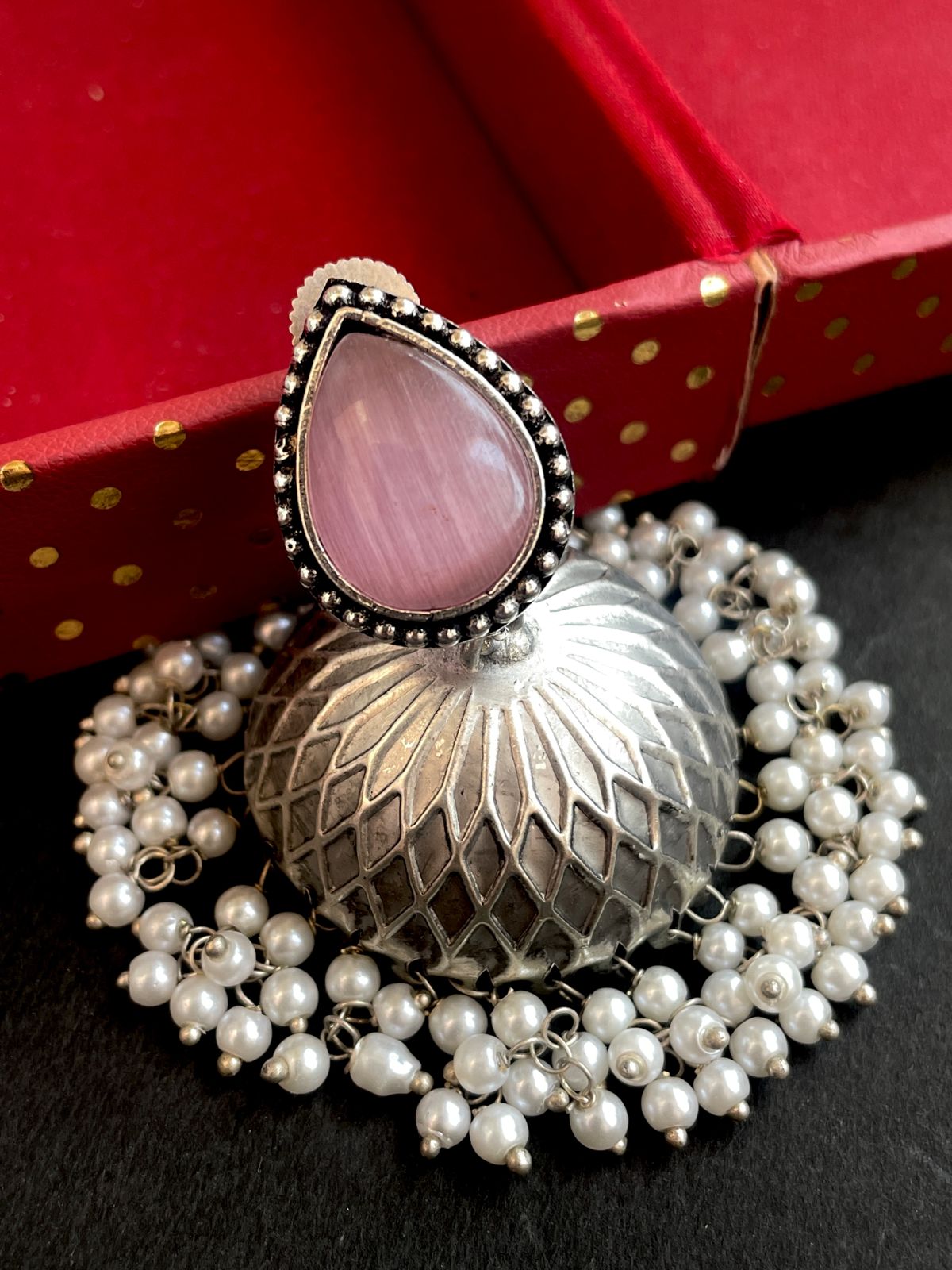 Monalisa Stone Top with Silver Replica Jhumki Earring