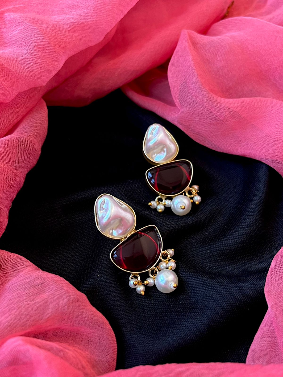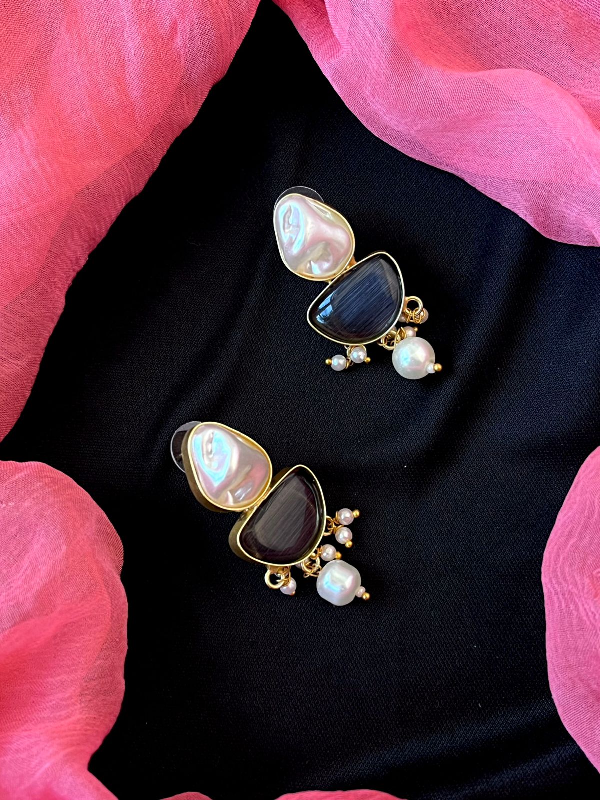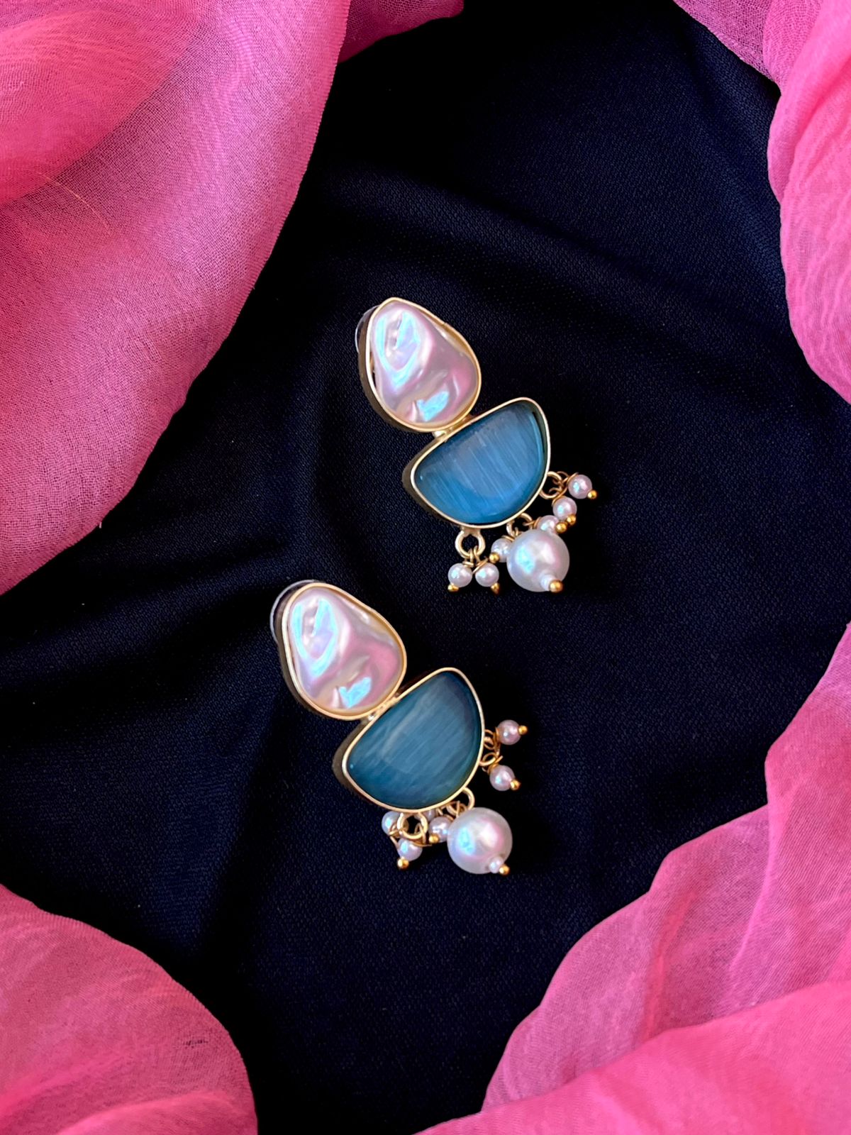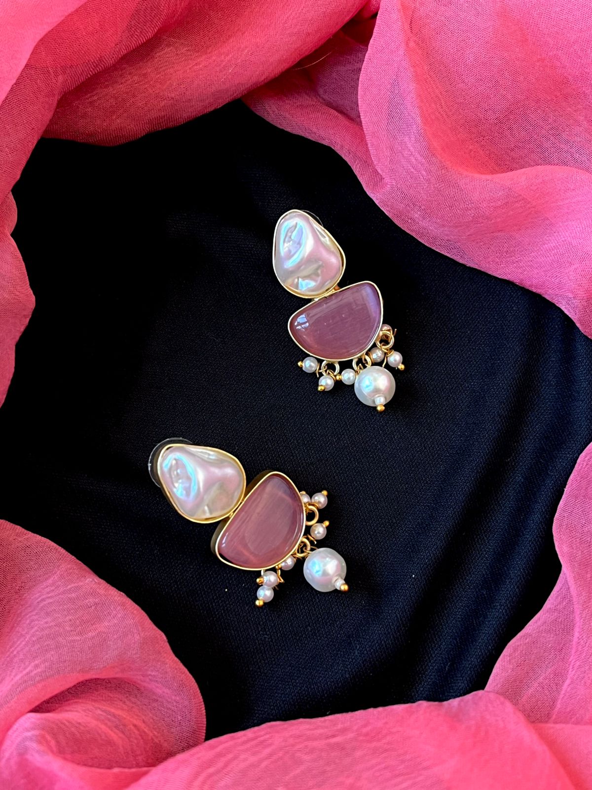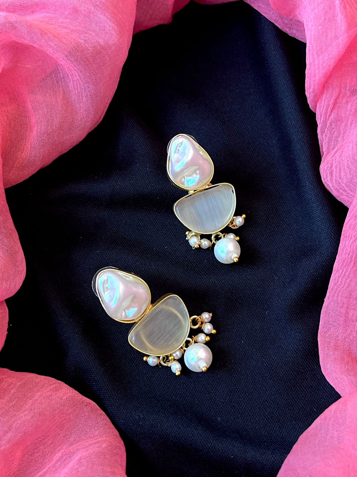 Monalisa Stone with Shell Pearl Pendant Necklace with Earring set