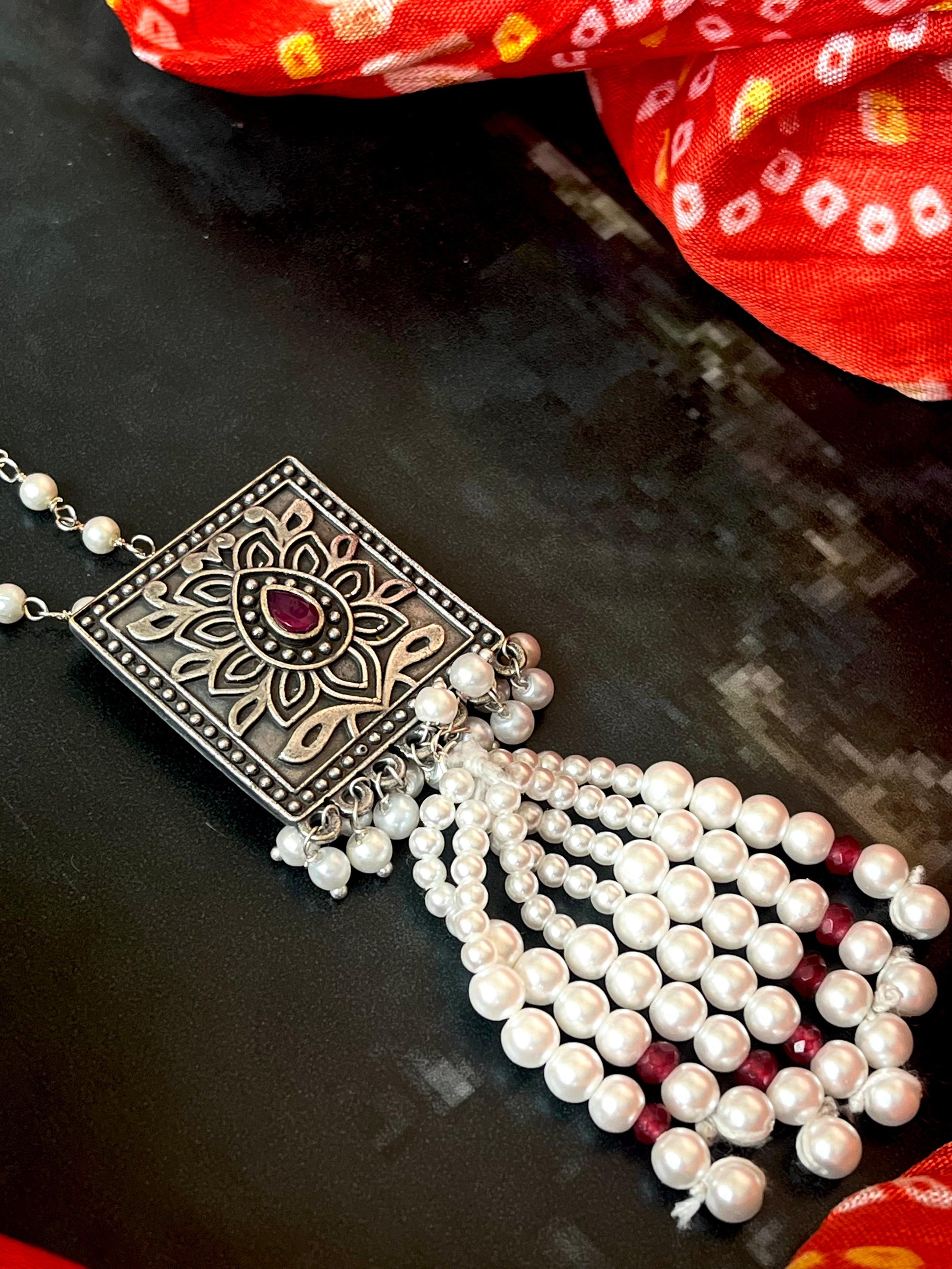 Oxidized Beaded Pendant Chain Necklace