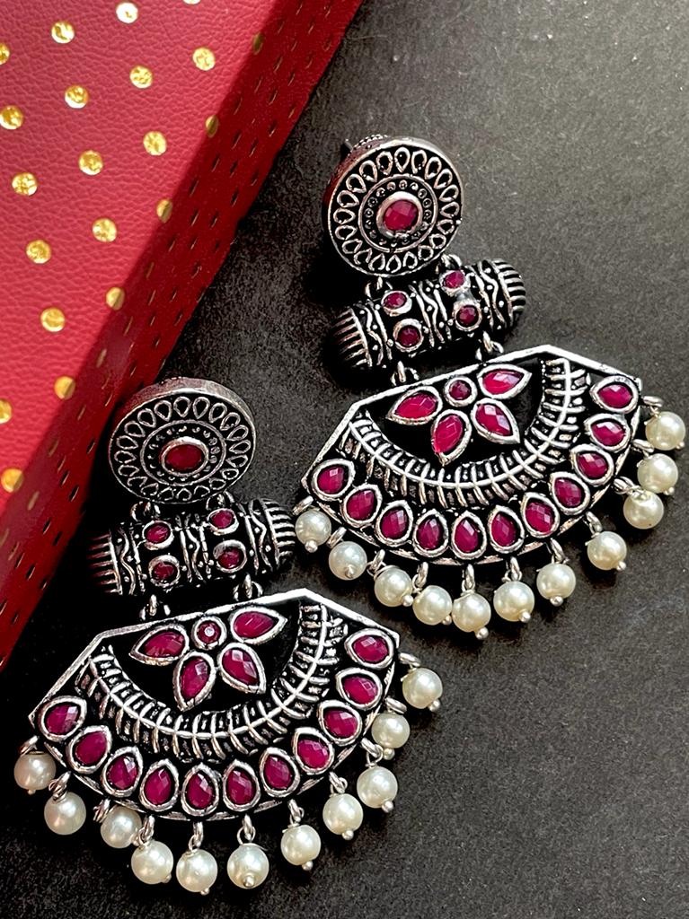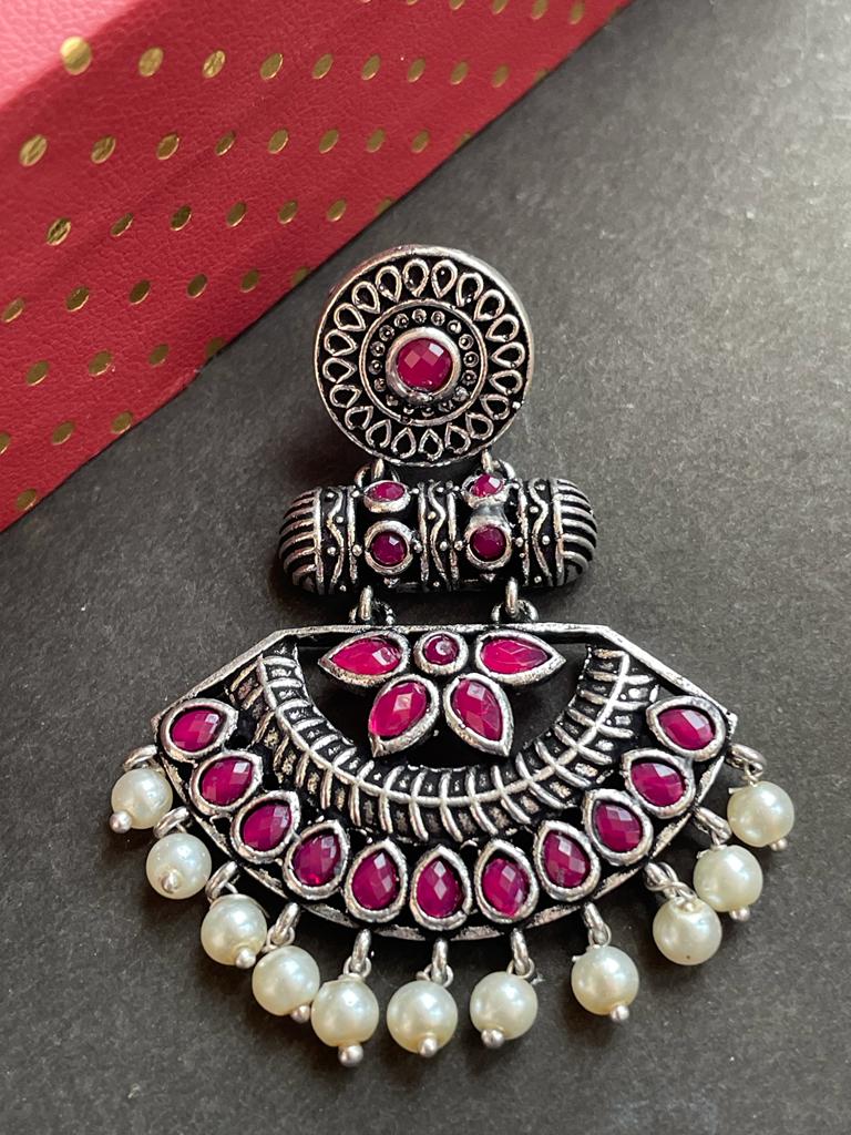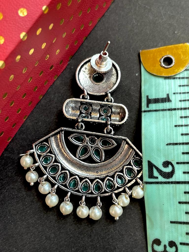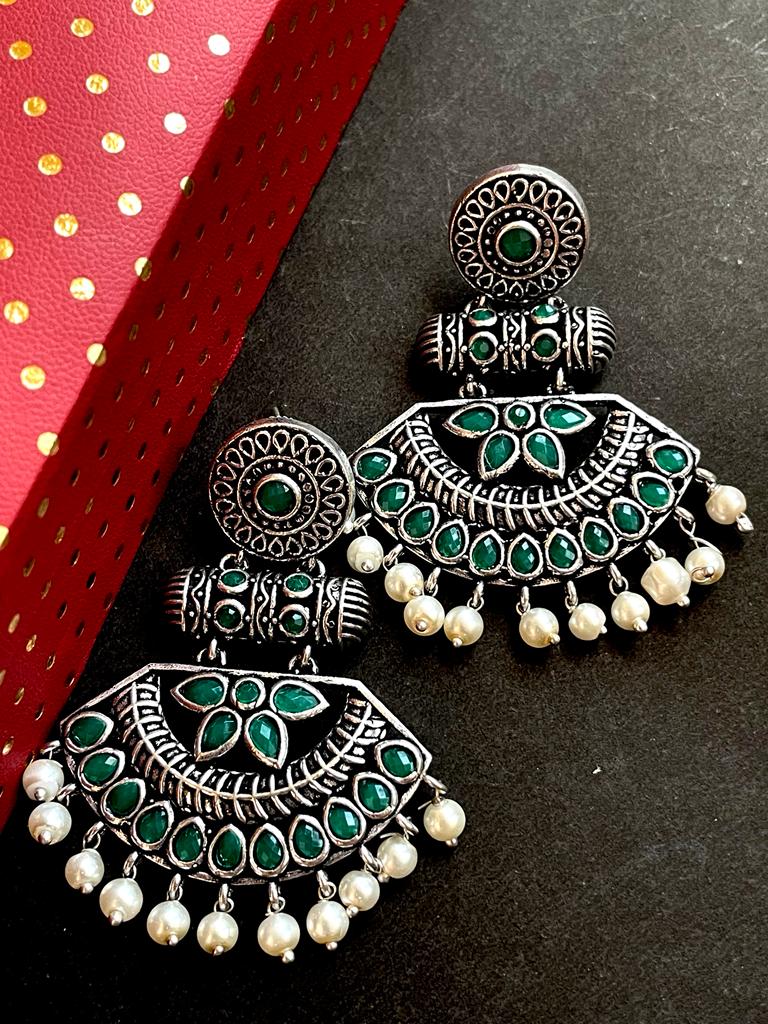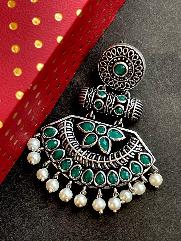 Oxidized Brass Chandbali Monalisa Stone Earring