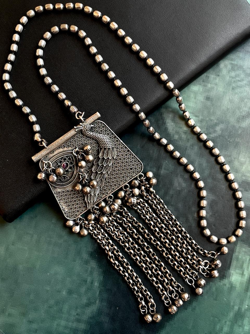 Peacock Black Polish Antique Look Pendant Oxidized Silver Necklace