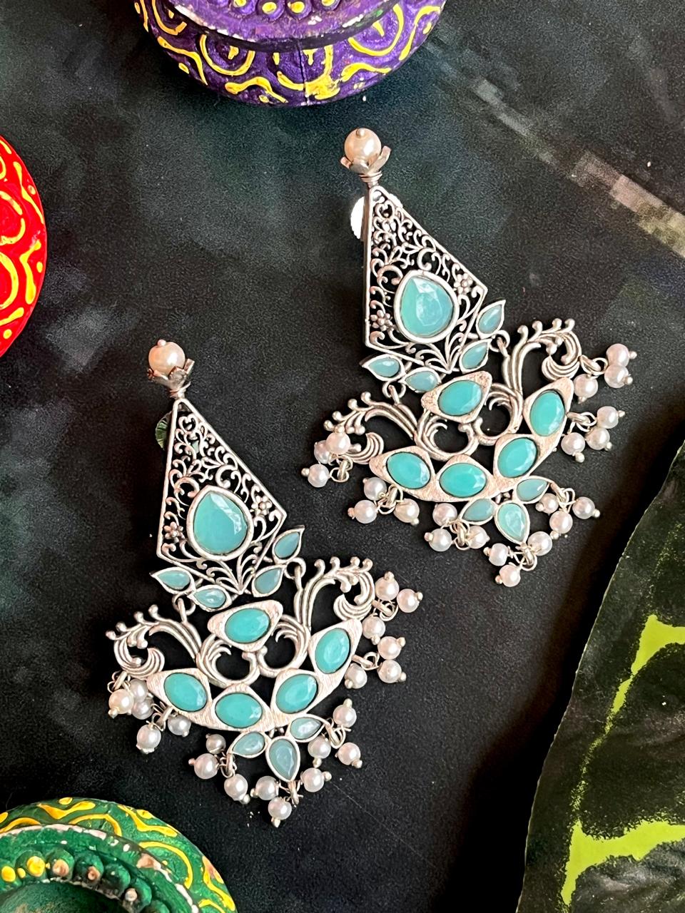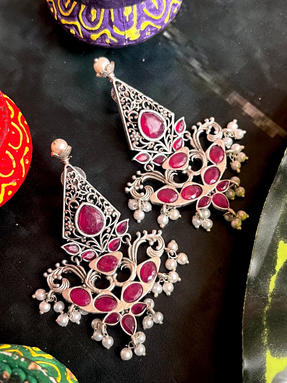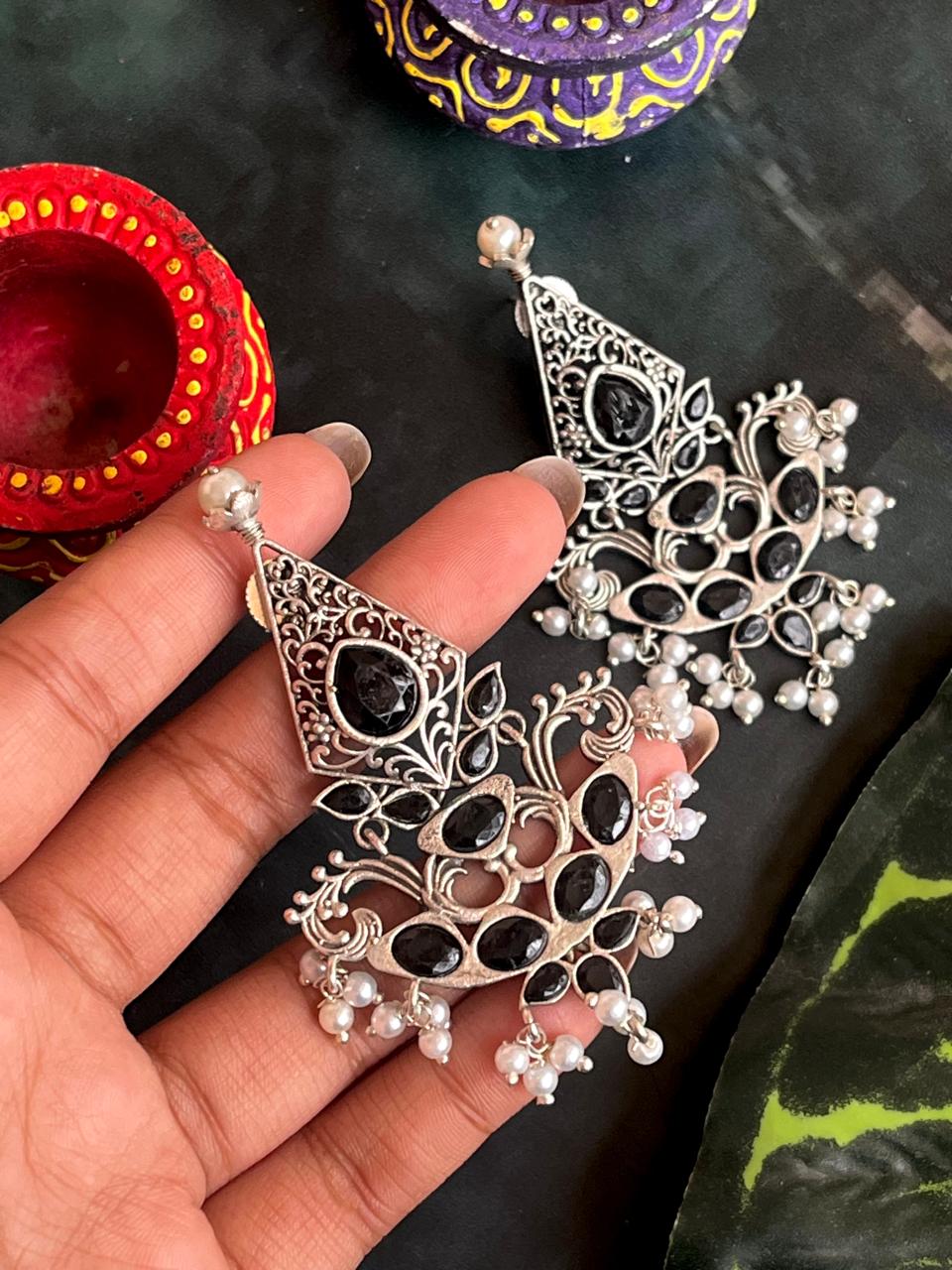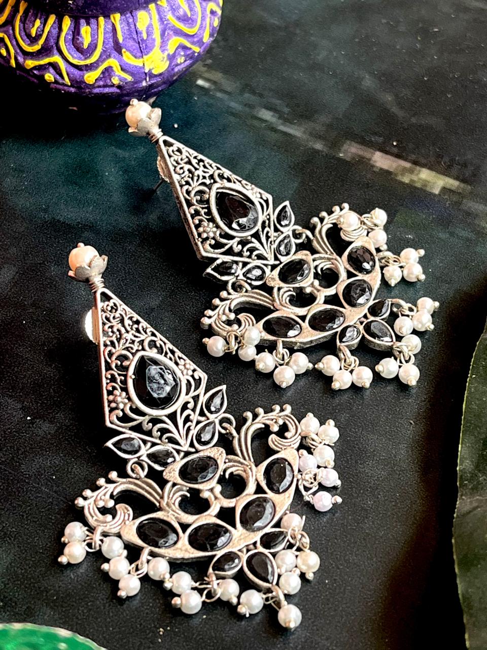 Silver Replica Oxidized Ethnic Earring