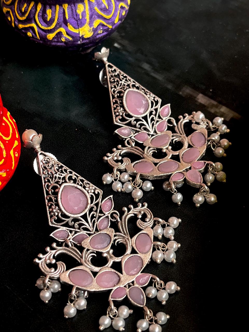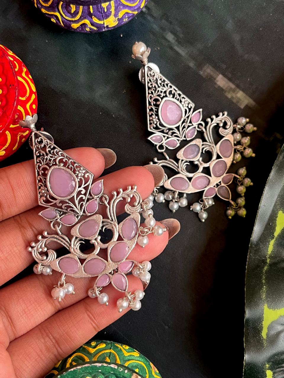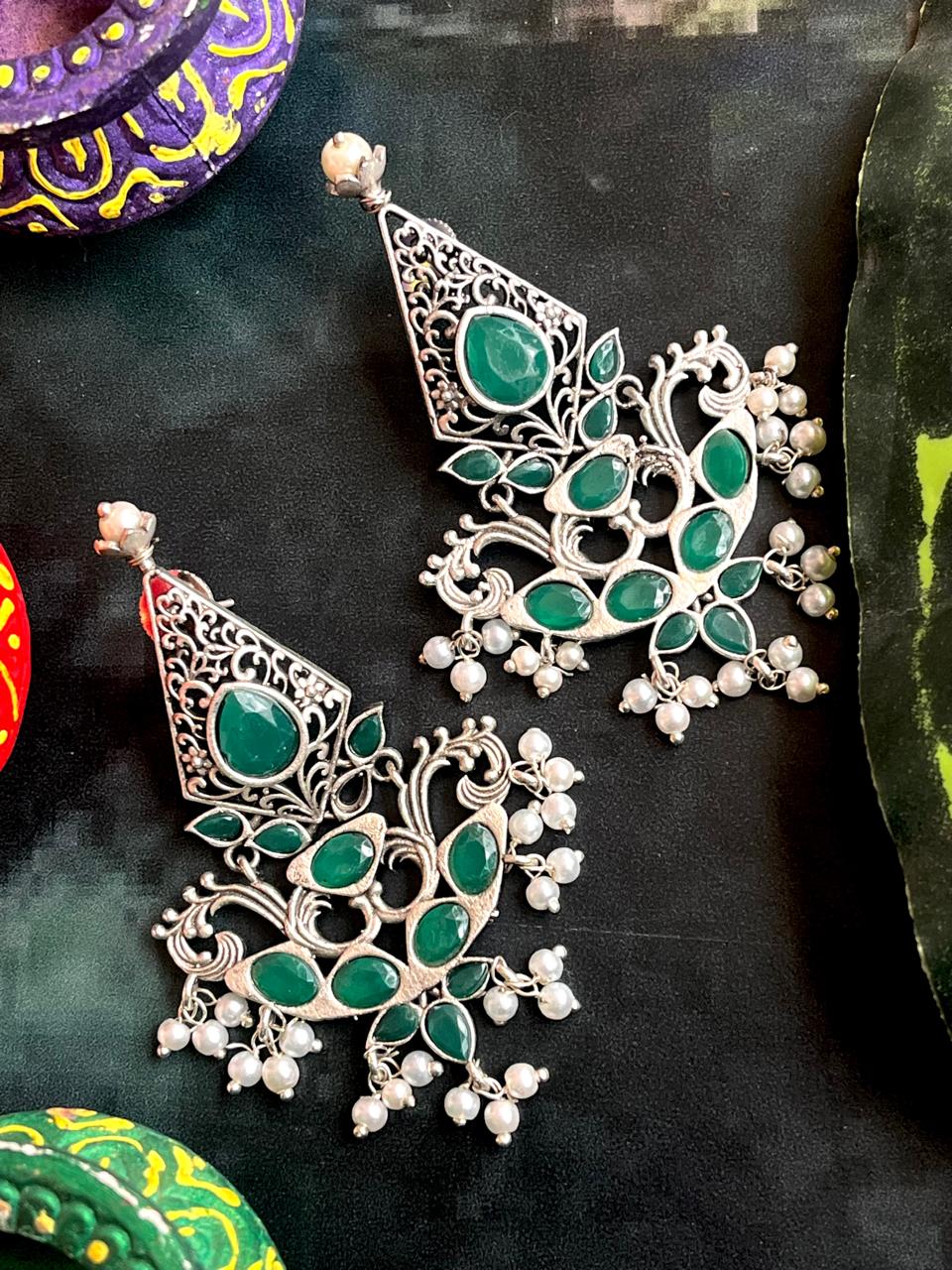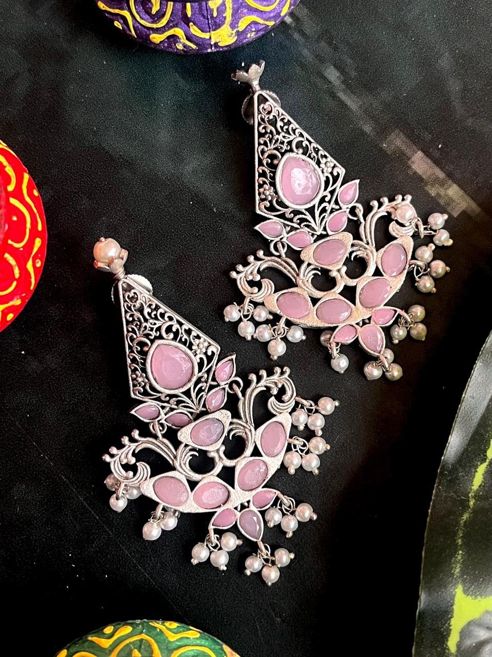 Silver Replica Oxidized Ethnic Earring