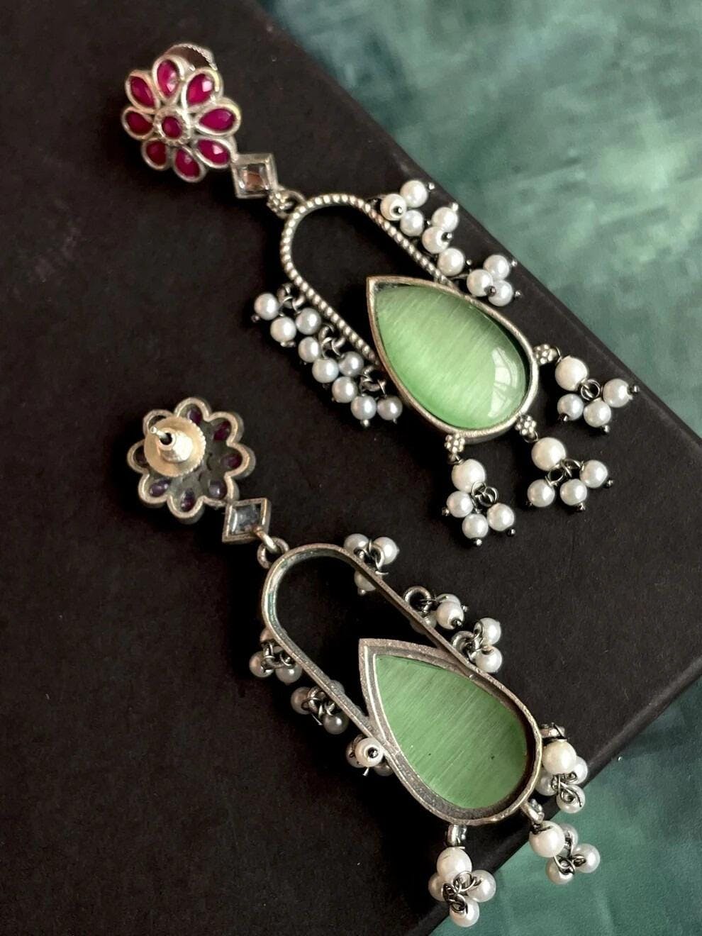 Stone Beaded Oxidized Jhumki Earring