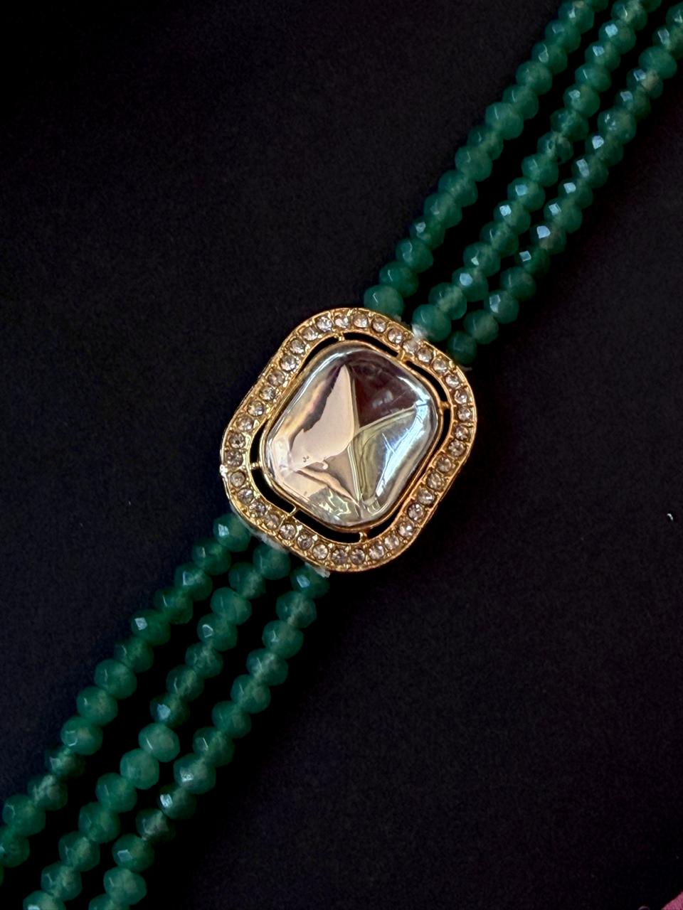 Stone Beads with Kundan Three Layered Choker and Kundan Earring Set